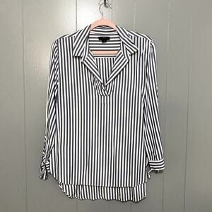J. Crew Blue White Striped Collared Tie Sleeve Classic Preppy Popover Shirt M