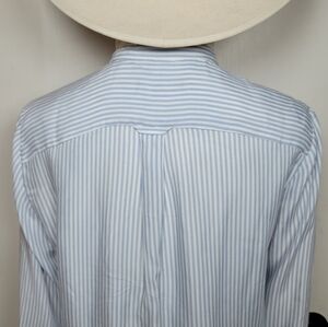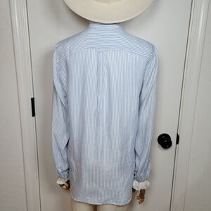 J. Crew Blue & White Striped Cupro Blend Button-Up Shirt Ruffle Trim Size Small