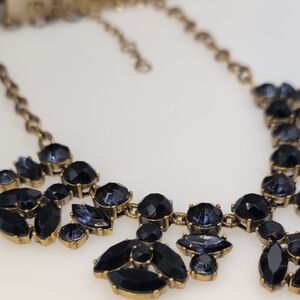 This stunning necklace by J. Crew features deep blue crystal clusters set against a warm gold-toned chain. The elegant design is perfect for making a statement, with its eye-catching contrast and sophisticated charm.