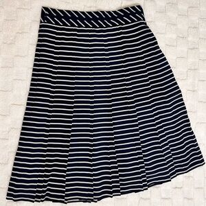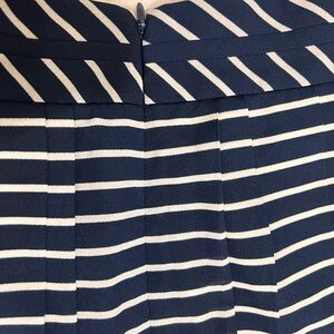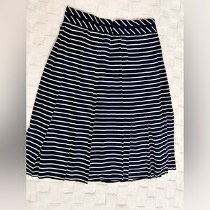 This elegant midi skirt from J. Crew has navy blue and white stripes with two hand pockets on the side of the skirt and with a zipper on the back Size:0