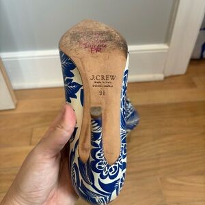 Chic heels with a striking blue and cream design. Perfect for elevating any outfit. Some wear on soles.