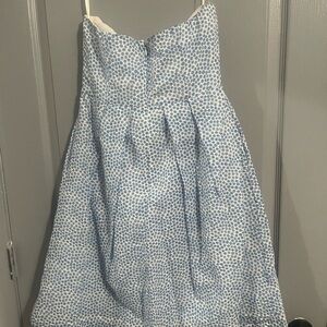 This sleeveless sundress by J. Crew features a charming pleated design in a refreshing blue and white color palette. The spaghetti strap and sweetheart neckline add a touch of elegance, making it perfect for casual outings or cocktail events. Its playful silhouette and pleated details create a classic and versatile look.
