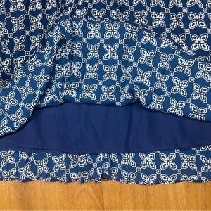 This chic mini skirt from J. Crew features a playful bubble style with a smocked waist, perfect for both work and casual settings. The blue and white geometric pattern adds a touch of sophistication, while the structured fabric ensures it maintains its shape beautifully.