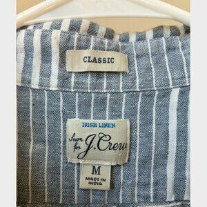 J. Crew Blue and White Striped Irish Linen Short Sleeve Button Up - Size M