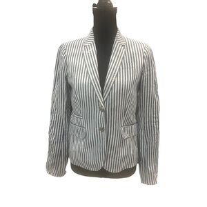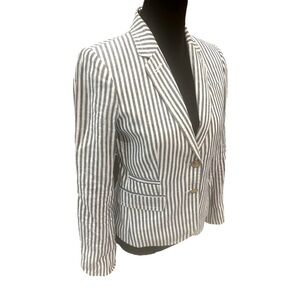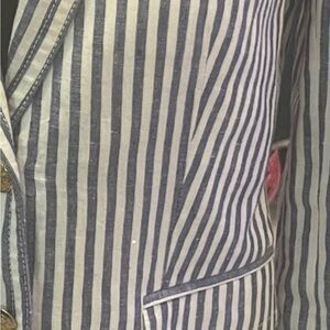 J Crew Blue and White Striped Linen Schoolboy Blazer