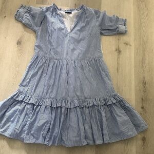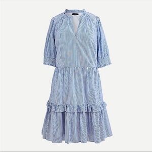 J. Crew Blue and White Striped Popover Tiered Ruffle Dress size small pockets