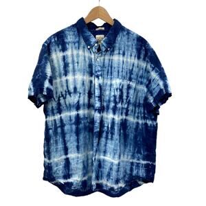 J. Crew Blue tie Dye linen Short Sleeve Button Down