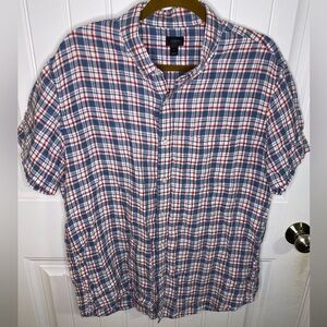 J Crew Blue/Red Checkered Short Sleeve Button Down Shirt