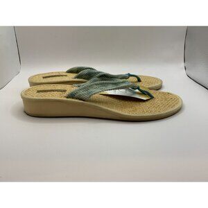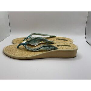 J. Crew Blue/Tan Wedge Thong Sandals, Size 8.5