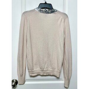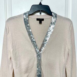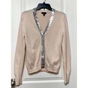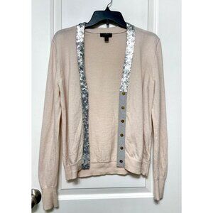 J. Crew Blush Merino Wool Cardigan With Silver Sequin Trim Size M