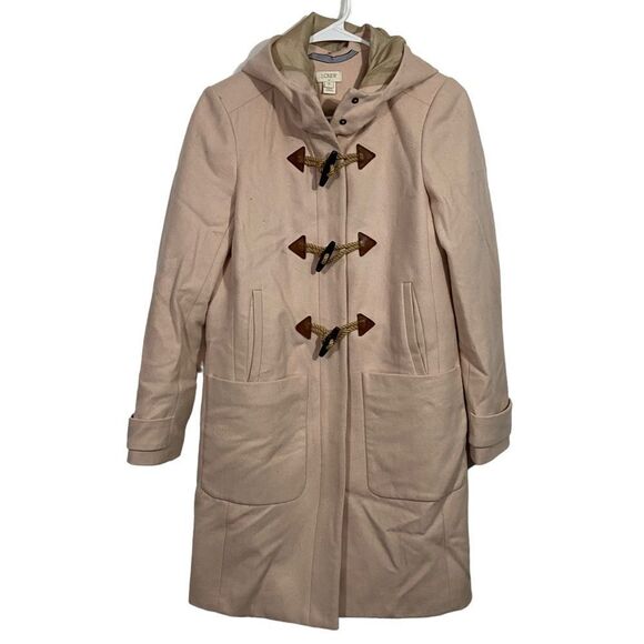 Gently worn women’s size 2 j. Crew blush pink long length cold weather jacket. Front pockets, latch closure, pea/trench coat style, hooded. Comes from a smoke free home, bundle with other items to save & minimize shipping cost.