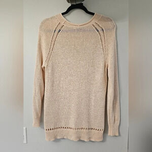 Rolled neckline Blush color Pointelle knit accents Ribbed cuffs and hem Armpit to armpit 21.5in across front only " Length from shoulder 28in " Measurements approximate