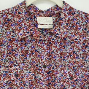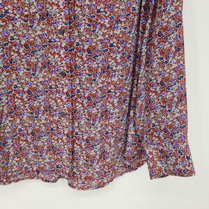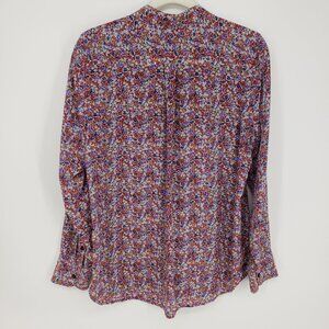 J. Crew Blythe 100% Silk Floral Print Button Down Shirt Top 8 Womens Red Blue