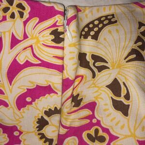 This is a beautiful J Crew pink floral mini skirt. It has pockets on each side and .5" loop holes. It has a hook & eye and zipper closure. It is in excellent conditon. Looks new. It is a size 4.