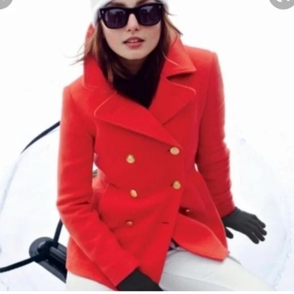 J. Crew Bold Holiday Red Wool Blend Double Breasted Coat Size 8 Petite