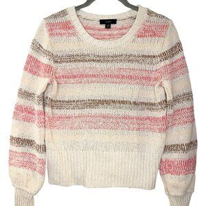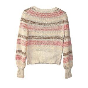 J. Crew Boucle Crewneck Wide Stripes CottonPullover Sweater Ivory Pink XXS