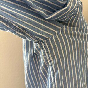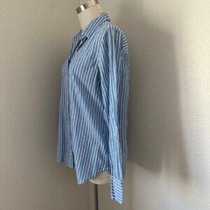 J. Crew Boy Fit Button Up Shirt Cotton Blend Stripe Lightweight Blue White Sz 4