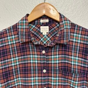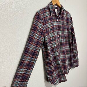 J. Crew Boy Fit Popover Blouse Women's Small Plaid Long Sleeve Half Button Top