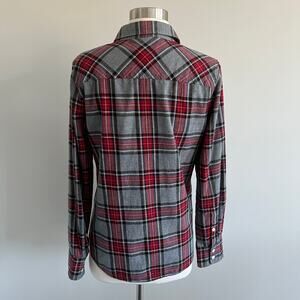 J. Crew Boy Plaid Flannel Shirt Grey Red Ladies size 4 100% Cotton Long Sleeve