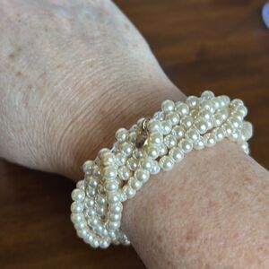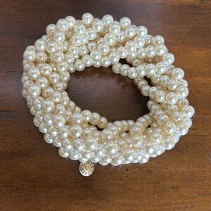 J Crew Bracelet Faux Pearl Beaded Stretch Twisted Multistrand Gold Tone
