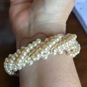 This charming bracelet captures the timeless elegance of vintage jewelry with its intricate design of faux pearls. An exquisite addition to any collection.