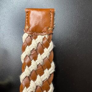 J. Crew Braided Belt Woven Tan Cream Leather Accent Belt Size M (44" Length)