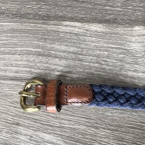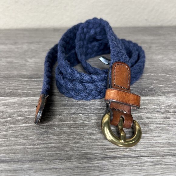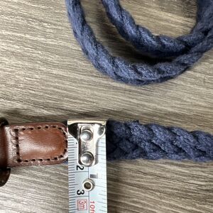 J Crew Braided Cotton Skinny Belt Womens S/M Navy Blue Leather Buckle Preppy