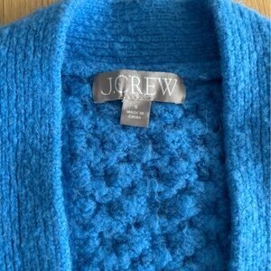 Rich blue knit with textured design. Soft and elegant. Very warm, some pilling throughout. Worn with love.