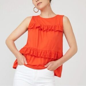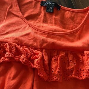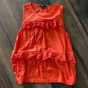 J. Crew Bright Orange Sleeveless Eyelet Ruffle Blouse Size XXS- 🍊cute