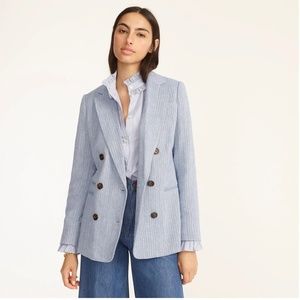 J. Crew Bristol Blazer, Sea Ivory Italian Cotton-Linen Herringbone. Menswear-inspired, but tailored for you with a nipped-in waist, this blazer was crafted in lightweight cotton-linen sourced from Italy's Novafides Spa Mill. Plus, the cotton in this blazer is made from recycled materials, like fabric scraps or old clothes.