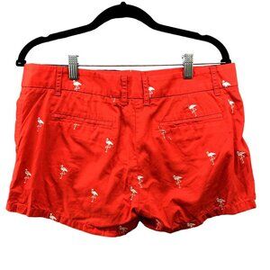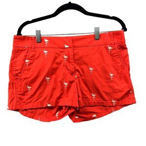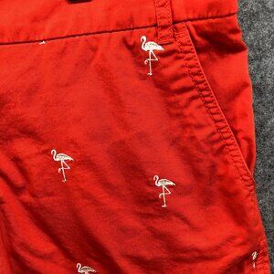 J. Crew Broken In Chino Shorts Womens Size 8 Red Embroidered Flamingo Tropical