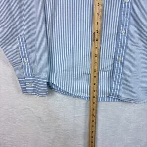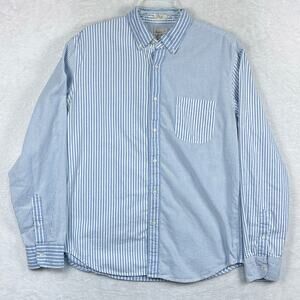 J Crew Broken In Oxford Shirt Mens L White Blue Striped Organic Preppy Slim