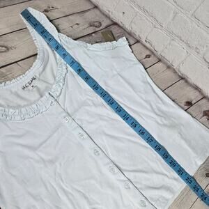 Keywords: J.Crew tank top, ruffle trim tank, button front tank, sleeveless top, blue tank top, cotton tank top, casual tank, summer top, women's tank top, XS tank top, ruffle tank top, J.Crew, basic top, new with tags