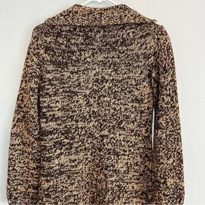 J Crew Brown Black Mix Cardigan Longline Sailor Collar Sz M Thick Warm Basic