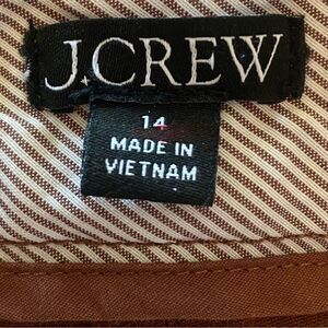 J. Crew Brown Chino Style Shorts Size 14. Excellent pre-owned condition. J. Crew Re-Imagined. Cotton blend and machine washable. Front hook, button and zipper closure. 2 front and back pockets. Measures approximately waist 36", inseam 4", rise 10.5".