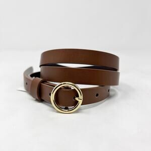 [J. Crew] Brown Genuine Italian Leather Round Gold Buckle Belt NWT Size L/XL