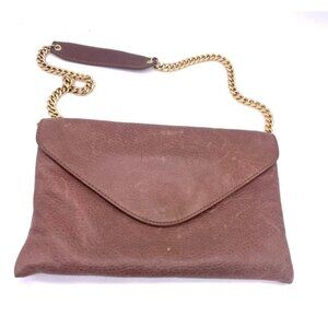 J. Crew Brown Leather Clutch With Gold Chain Strap