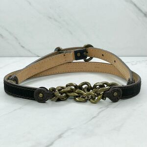 J. Crew Brown Leather Fur Chain Belt - Size Medium M | Gold Hardware