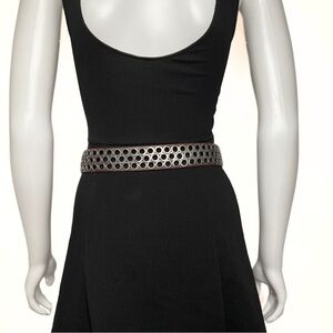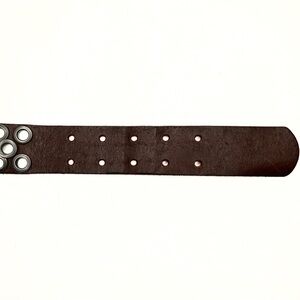 J Crew Brown Leather Grommet Nickel Hardware Belt Womens SZ S Edgy Punk Grunge
