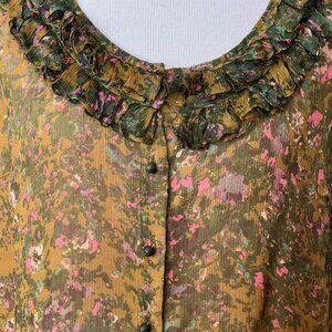J. Crew Brown Moody Floral Silk Blouse Sleeveless Top Size 10 Ruffle Neck Collar