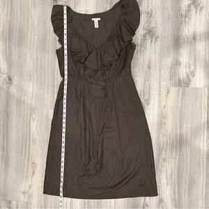 J. Crew Brown Ruffled Sleeveless Silk Blend A-Line Knee Length Dress Size 4