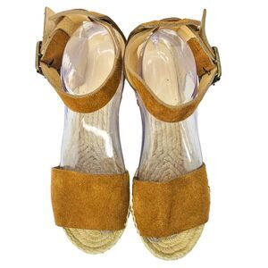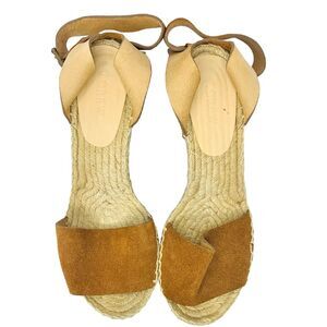 J Crew Brown Suede Corsica Espadrille Wedge Sandals Size 9 - 3.75" Heel Dark Tan