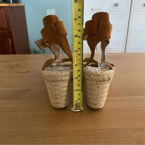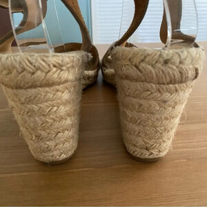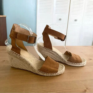 J Crew Brown Suede Corsica Espadrille Wedge Sandals Size 9 - 3.75" Heel Dark Tan
