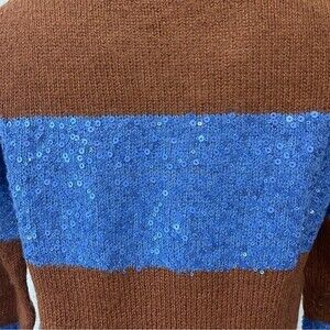 J. Crew Brown Sweater Blue Sequin Stripe Wool Mohair Blend Sweater Size XS