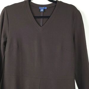 J. Crew Brown V-neck Ponte Knit Long Sleeve Dress Size 8