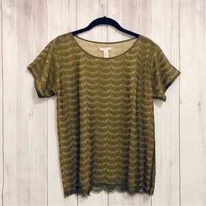 J. Crew Brown and Tan Lace Short Sleeve Blouse Top Size XS
