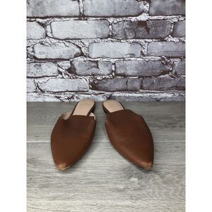J Crew Brown Leather Pointed Toe Slip On Mules Flats Shoes Women Sz 8.5M US/39EU