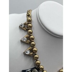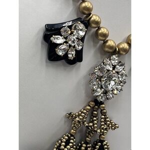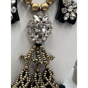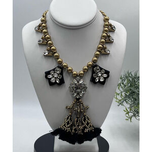 J. Crew Brushed Gold Tone Black Tassel Rhinestone Long Necklace