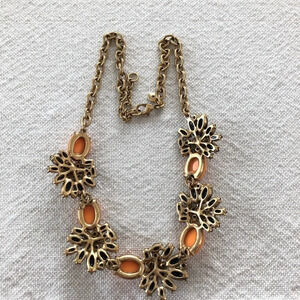 J Crew Brushed Gold Tone Orange Golden Brown Statement Necklace Fashion Jewelry