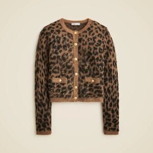 J. Crew Brushed Sweater Lady Jacket Leopard Print Size XXS Wool Quiet Luxury Chic